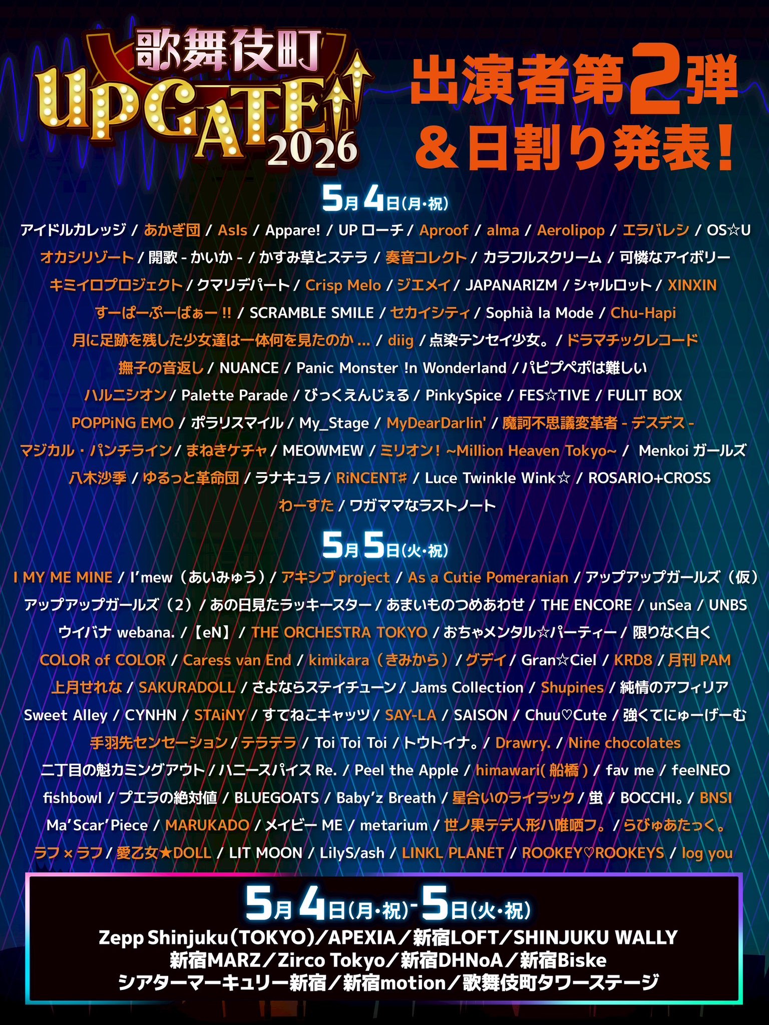 Zepp Shinjuku (TOKYO)APEXIA / *F#LOFT/SHINJUKU WALLY新宿MARZ/Zirco Tokyo/新宿DHNoA新宿Biskeシアターマーキュリー新宿新宿motion/歌舞伎町タワーステージ